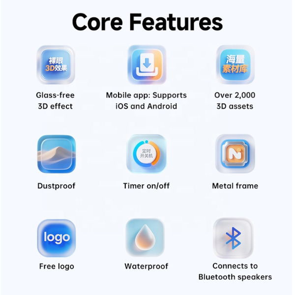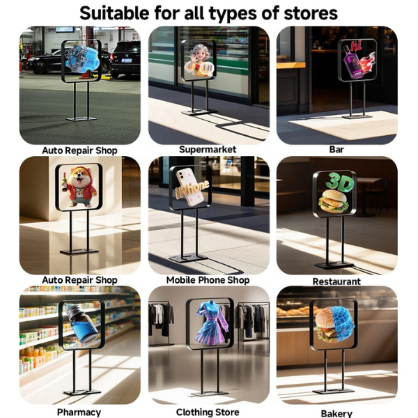 La memoria di 8 GB permette di memorizzare un’ampia di quantità di video, mentre il player è compatibile con i formati MP4, AVI, RMVB, GIF, JPG, MPEG. Il totem supporta l’audio via bluetooth (casse non comprese).