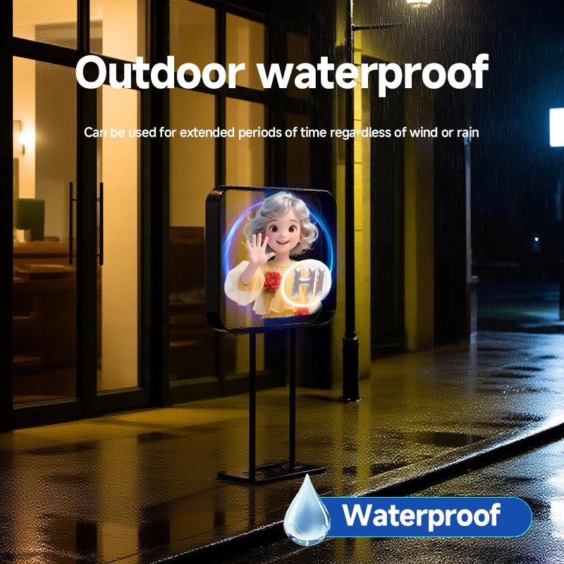 Totem Pubblicitario Olografico da esterni ed interni, con struttura in alluminio verniciato e protezioni in acrilico trasparente sul fronte e sul retro. Il totem olografico contiene una HoloFan, una ventola a 4 lame con led ad alta definizione che ti permette di creare video pubblicitari e promozioni 3D. Il sistema è già completo di struttura, protezione trasparente e ventola con telecomando e app.
